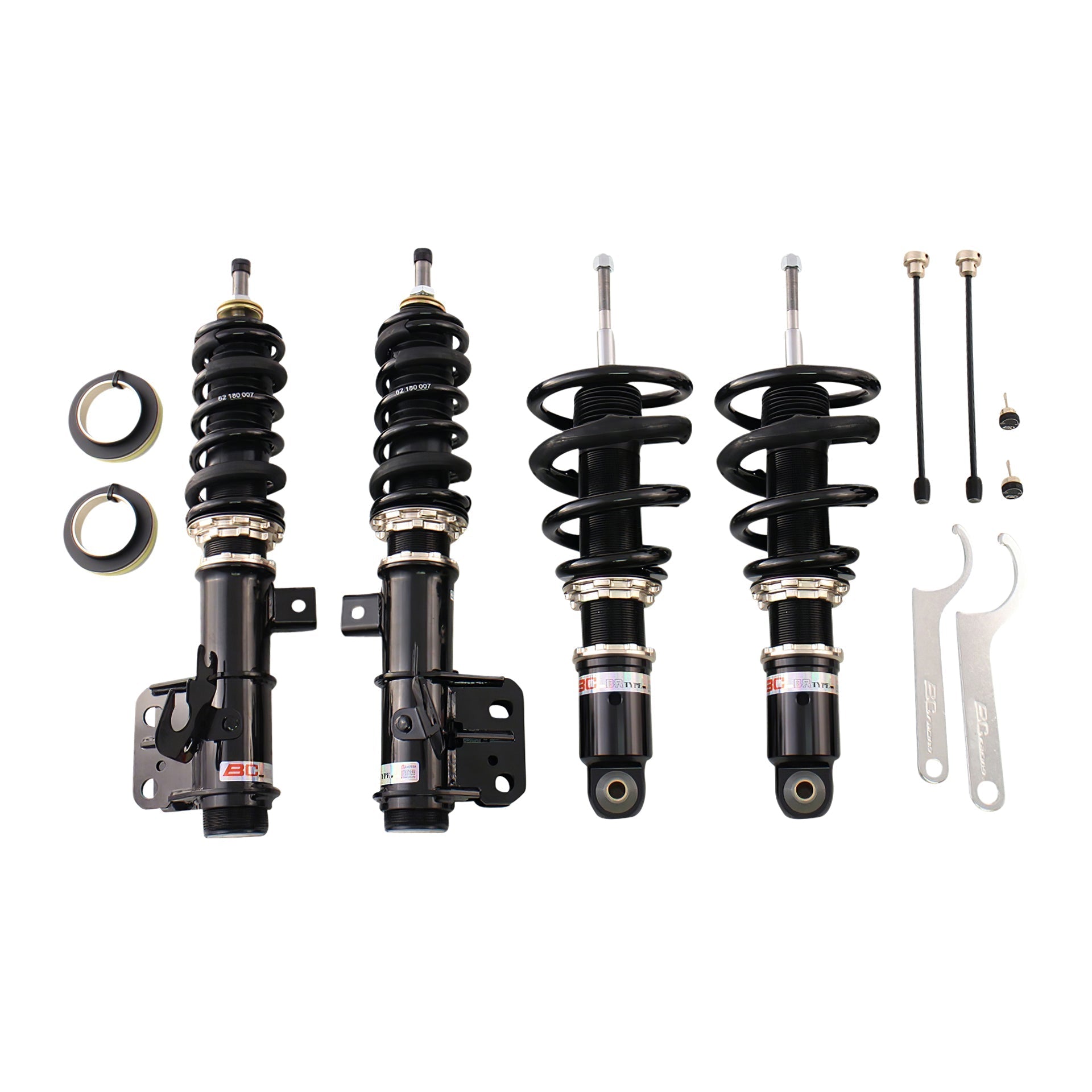 The BC Racing BR Series offers the most affordable entry into coilover suspension without sacrificing performance, comfort, build quality, vehicle height, or handling. This is done by extensively testing each vehicle then refining the coilover characteristics as many times as needed to ensure the most well-balanced and affordable aftermarket suspension conceivable. BC Racing takes great pride in choosing spring rates for our off-the-shelf kits that strike the perfect balance between comfort and performance so you're never stuck with an oversprung suspension like many other brands sell. BC Racing offers one of the widest ranges of damping adjustment with 30-clicks of compression/rebound adjusted simultaneously on the BR Series. With meticulously chosen spring rates, damper valving, and one of the widest adjustment ranges in the industry, you can't go wrong with the BC Racing BR Series Coilover System.