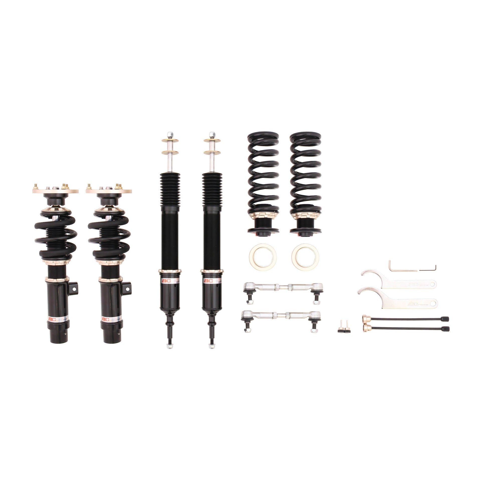 The BC Racing BR Series offers the most affordable entry into coilover suspension without sacrificing performance, comfort, build quality, vehicle height, or handling. This is done by extensively testing each vehicle then refining the coilover characteristics as many times as needed to ensure the most well-balanced and affordable aftermarket suspension conceivable. BC Racing takes great pride in choosing spring rates for our off-the-shelf kits that strike the perfect balance between comfort and performance so you're never stuck with an oversprung suspension like many other brands sell. BC Racing offers one of the widest ranges of damping adjustment with 30-clicks of compression/rebound adjusted simultaneously on the BR Series. With meticulously chosen spring rates, damper valving, and one of the widest adjustment ranges in the industry, you can't go wrong with the BC Racing BR Series Coilover System.