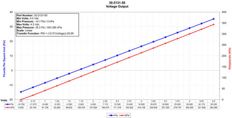 AEM offer high quality brass PSIa sensors in 30(2BAR), 50 (3.5BAR) and 75 (5BAR). PSIa is referenced to absolute zero. Absolute zero is the pressure measurement when all the pressure exerted by the atmosphere has been removed. The most common use for absolute pressure sensors is reading manifold pressure. PSIa sensors are required of you wish to measure vacuum. A PSIa sensor will read about 14.7 PSI when the sensing element is exposed to atmospheric pressure at sea level however they can be recalibrated to read zero at atmospheric and a negative number at values less than atmospheric pressure.