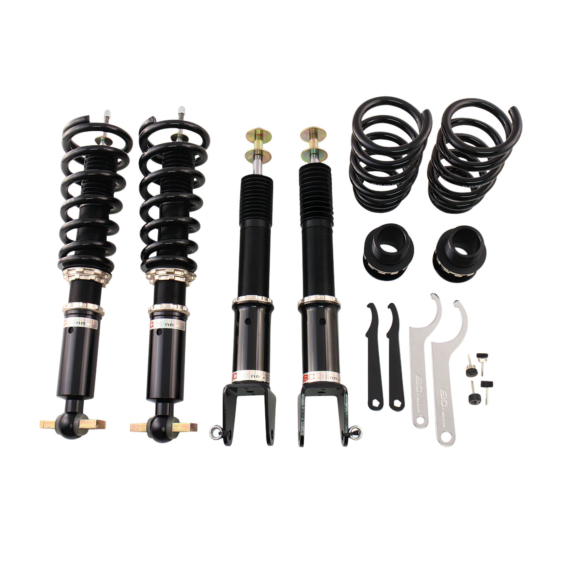 The BC Racing BR Series offers the most affordable entry into coilover suspension without sacrificing performance, comfort, build quality, vehicle height, or handling. This is done by extensively testing each vehicle then refining the coilover characteristics as many times as needed to ensure the most well-balanced and affordable aftermarket suspension conceivable. BC Racing takes great pride in choosing spring rates for our off-the-shelf kits that strike the perfect balance between comfort and performance so you're never stuck with an oversprung suspension like many other brands sell. BC Racing offers one of the widest ranges of damping adjustment with 30-clicks of compression/rebound adjusted simultaneously on the BR Series. With meticulously chosen spring rates, damper valving, and one of the widest adjustment ranges in the industry, you can't go wrong with the BC Racing BR Series Coilover System.