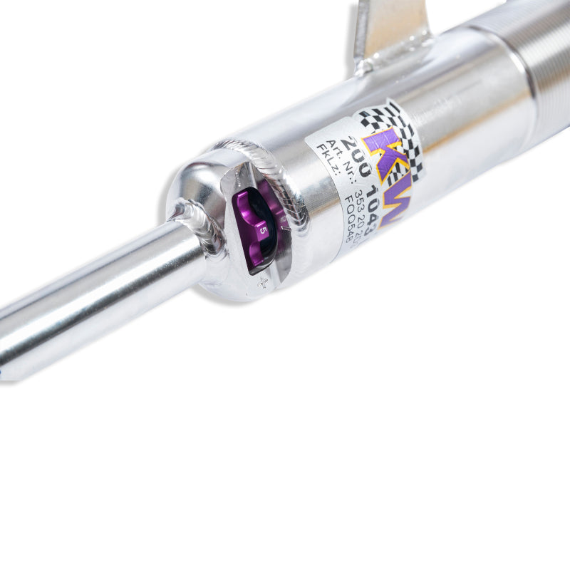 Unparalleled street performance bred from motorsports heritage, the patented KW-valve technology -or the separate Adjustment -f rebound and compression damping, allows you to individually adapt the vehicle-specific base setup.