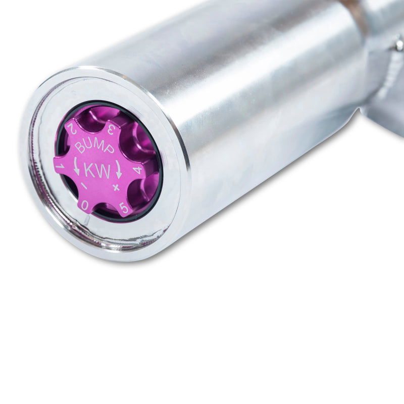 Cutting-edge motorsports technology for more performance on the road. Like every suspension product developed by KW automotive, the suspension manufacturer, and manufactured in Germany, the KW V3 Coilover suspension kit also provides a significant plus in safety reserves in road traffic. Thanks to the chassis with its high-quality dampers, springs, and elastomer spring elements, pitching and rolling movements during load changes such as evasive maneuvers, cornering, acceleration, and braking are significantly reduced. The braking distances are also shortened. Thanks to improved support and feedback, drivers not only feel safer but driving in everyday life becomes even safer. With compression and rebound stage damping, that can be set separately and independently of each other, the damper setup can be customized to your personal driving preferences or vehicle changes such as weight, tire characteristics, or altered vehicle rigidity. True performance optimization is only possible with this unique, patented system. For example, this allows the compression damping force to be increased and get more grip from the tires, to improve cornering behavior and reduce squat without simultaneously altering the rebound stage damping which is optimally matched to the spring rate, a scenario which results in reduced grip and the associated loss of performance. The KW V3 coilover kit is the ideal tool for performance-oriented drivers and experienced tuning enthusiasts who place a strong emphasis on the overall performance of their suspension. The Variant 3 features patented TVR-A and TVC-A technology that provides separately adjustable rebound and compression damping. The extensive adjustment range of the independently configurable rebound and compression make it easy to directly influence the steering behavior, directional stability, grip and handling characteristics for confident and repeatable results at the limit of driving dynamics.
