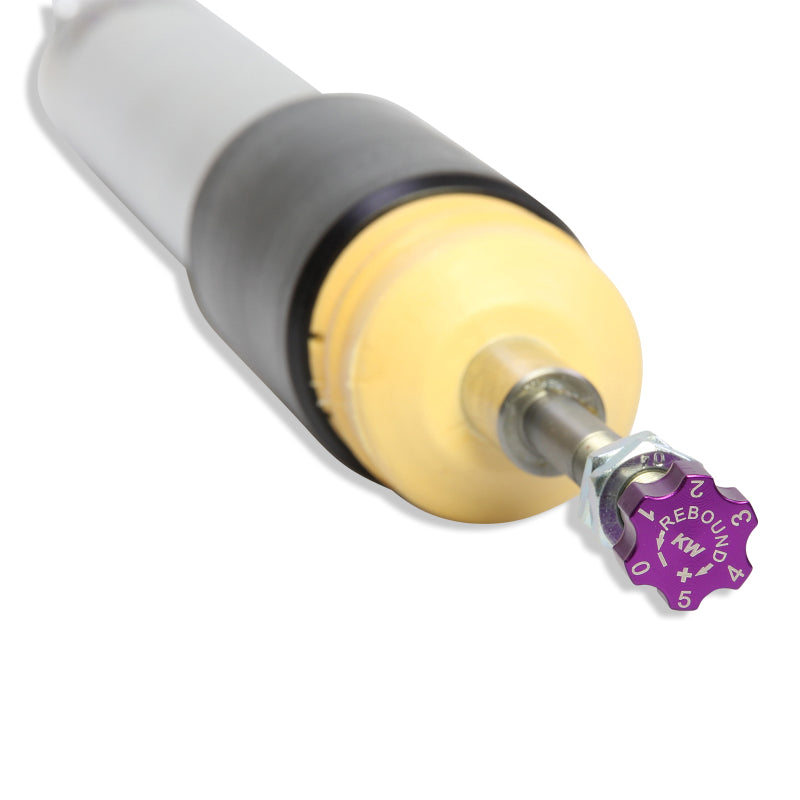 Unparalleled street performance bred from motorsports heritage, the patented KW-valve technology -or the separate Adjustment -f rebound and compression damping, allows you to individually adapt the vehicle-specific base setup.