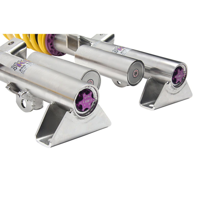 Unparalleled street performance bred from motorsports heritage, the patented KW-valve technology -or the separate Adjustment -f rebound and compression damping, allows you to individually adapt the vehicle-specific base setup.