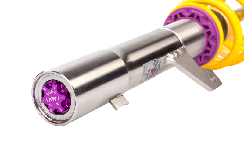 Unparalleled street performance bred from motorsports heritage, the patented KW-valve technology -or the separate Adjustment -f rebound and compression damping, allows you to individually adapt the vehicle-specific base setup.