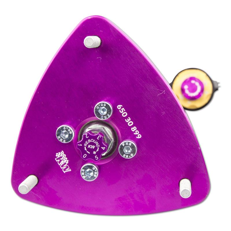 Using the Nordschleife as it's testing grounds and the 7-post rig, KW developed it's V4 Clubsport coilover kit. Wheel loads, vehicle weight and chassis reinforcements (increased body stiffness) can all be taken into consideration with Adjustment -capabilities of the V4 Clubsport. The KW Clubsport coilovers combine KW's high-end racing technology -with maintenance-free KW OEM quality components. Designed to provide you the ideal product to utilize the full potential of your sports car during autocross, track days, high performance drivers education (HPDE) courses, club racing, and is tested rigorously on race tracks such as the Nurburgring Nordschleife. Race teams rely on KW's racing expertise and experience for their vehicle setup. This same championship winning pedigree is mirrored in the development of each one of the KW Clubsport coilover systems. Similar to the KW Competition suspension used in international motorsports, the KW V4 Clubsport coilover kit allows fine tuning of the compression damping separately in the low-speed and high-speed range. The click adjustments of the TVCLH-A valve technology -ake for easy Adjustment -directly on the reservoir. You can modify the low-speed compression damping with 6 precise clicks with the purple low speed Adjustment -ial and directly beneath it the golden Adjustment -heel provides an additional 14 precise clicks of high speed compression adjustment. In addition, the TVR-A technology -provides 16 clicks to noticeably adjust the rebound damping independently of the compression damping. If you would like to adjust the KW V4 Clubsport coilover kit it can easily be adjusted for more comfort or to an alternative setup for a new race track. The KW V4 Clubsport benefits from the same motorsports technology -hat has proven its endurance with multiple overall wins at the ADAC Zurich 24h Nurburgring race.