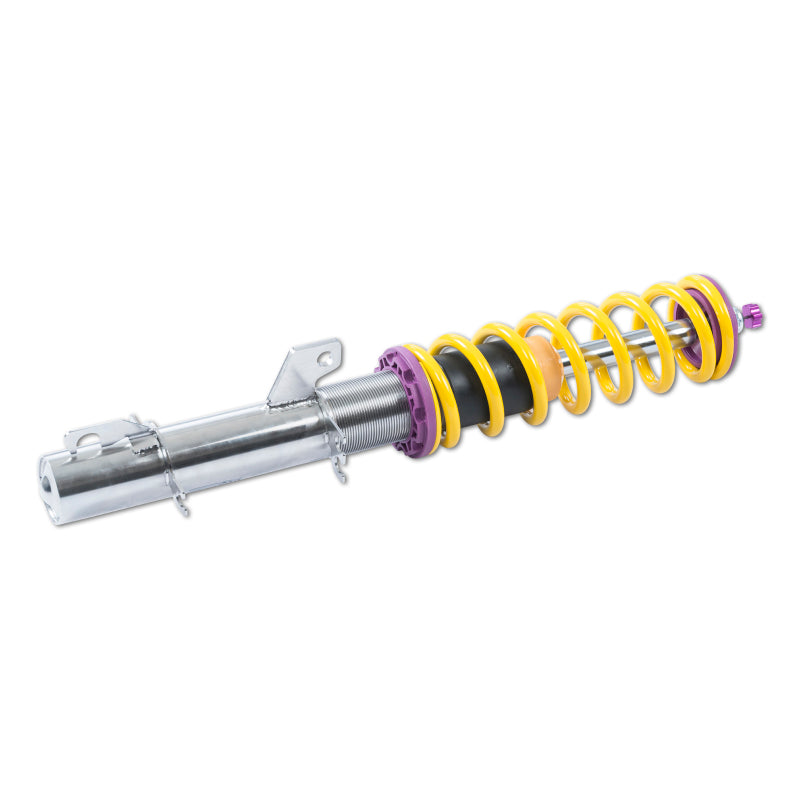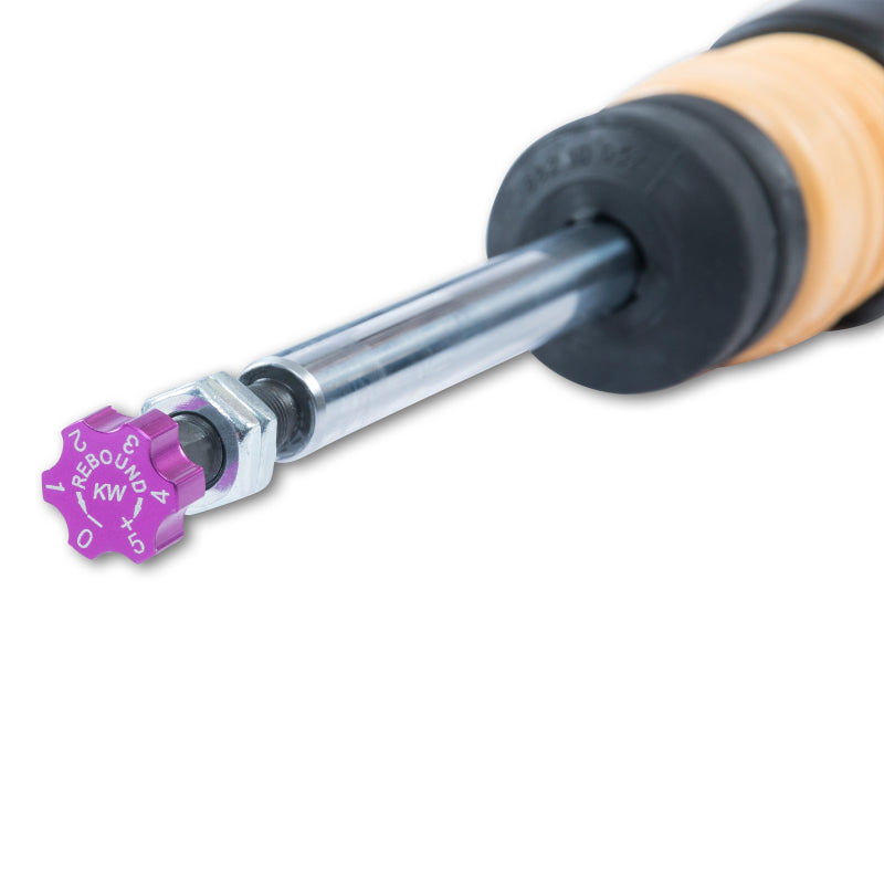 Is your factory sport suspension too firm? Do you want a sporty look and driving dynamics without having to compromise comfort? KW V2 comfort coilovers take the already stellar ride and reputation of KW suspensions coilover systems to the next level of comfort. Designed specifically to maximize comfort KW V2 Comfort coilovers provide a subtle lowering with adjustable ride height and rebound damping adjustability allowing the handling or the comfort to be individually tailored as desired via the integrated rebound adjustment knobs. KW V2 Comfort coilovers offer the perfect compromise of driving dynamics and ride comfort. With the KW V2 Comfort coilover kit, your comfort-oriented driving pleasure is the focus. That's why our test engineers evaluate the setups on numerous highways and country roads with various road surface types. The KW V2 Comfort coilover kits are suitable for all drivers who want to combine the joy of a decent lowering with driving comfort. With the 16-click adjustable rebound damping (TVR-A-technology), you can tune the KW dampers on the KW V2 Comfort coilover kits to make it more comfortable or sportier. The two-stage, patented TVR-A (Twin Valve Rebound - Adjustable) technology enables a small volume of oil to flow through an adjustable, conically shaped, low-speed bypass during low damper speeds, while in the case of higher damper speeds, the main rebound stage valve opens allowing a larger volume of oil to flow. This provides a big improvement in terms of ride comfort without influencing the safety-relevant high-speed range. There are 16 precise clicks available for individual settings, so you can choose between more comfort or more body control. The KW V2 Comfort coilovers, made using INOX-LINE stainless steel technology, enables a vehicle-specific lowering within the tested adjustment range of 10 to 40 mm.